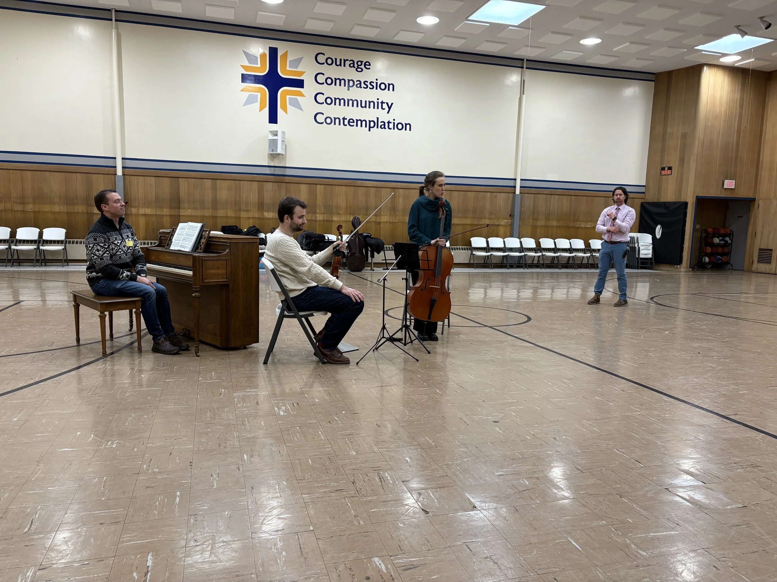 During their visit, the trio introduced students to the world of chamber music, sharing not only their artistry, but also insights into performance, collaboration, and the role music plays in their lives. Students listened to selections from composers including Ludwig van Beethoven, Jennifer Higdon, and Antonín Dvořák, and had the opportunity to ask thoughtful questions about musicianship and the journey of becoming a professional artist.